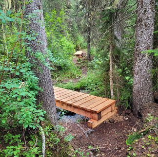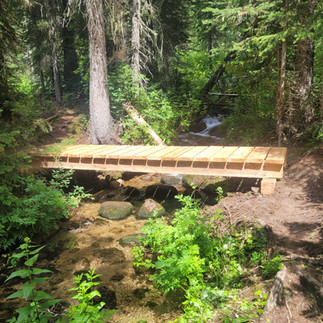 • Heavy bridge timbers, decking and planks hand-carried deep into the trail